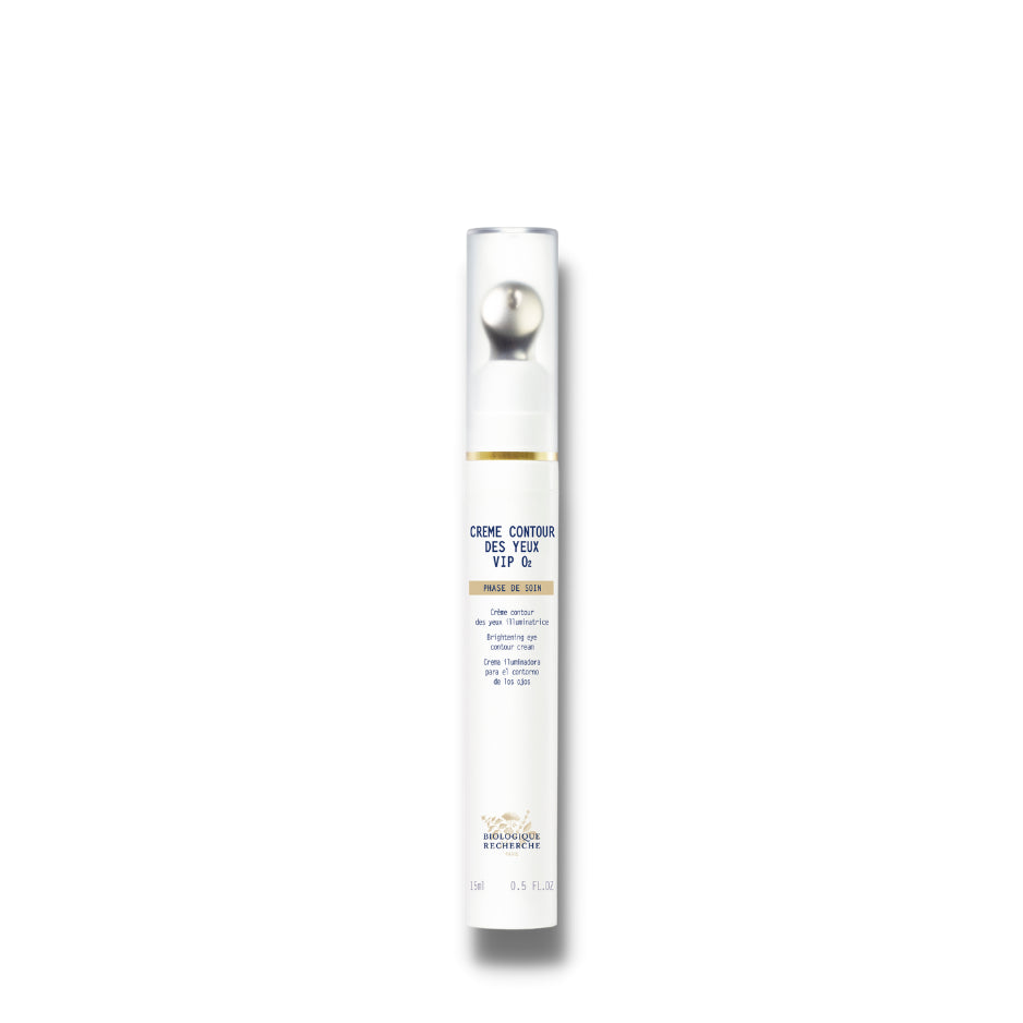 Aplicar una pequeña cantidad de Crème Yeux VIP O2 sobre la zona del contorno de ojos, a continuación de la leche y la loción P50 aconsejadas.